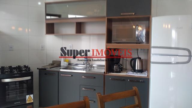 Possui: 01 Dormitório, sala de estar e jantar, cozinha, bwc, área de serviço, sacada com churrasqueira, garagem rotativa.