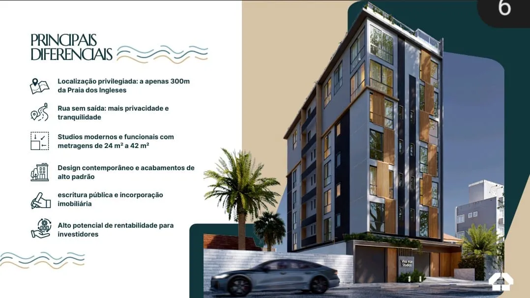 Studio moderno e funcional localizado à 300 metros do mar da Praia dos Ingleses, ideal para moradia e também como investimento de locação de temporada! Com rentabilidade garantida!!