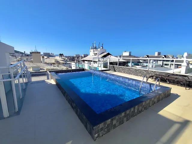 Condominío conta com elevador, piscina e salão de festas no ático.